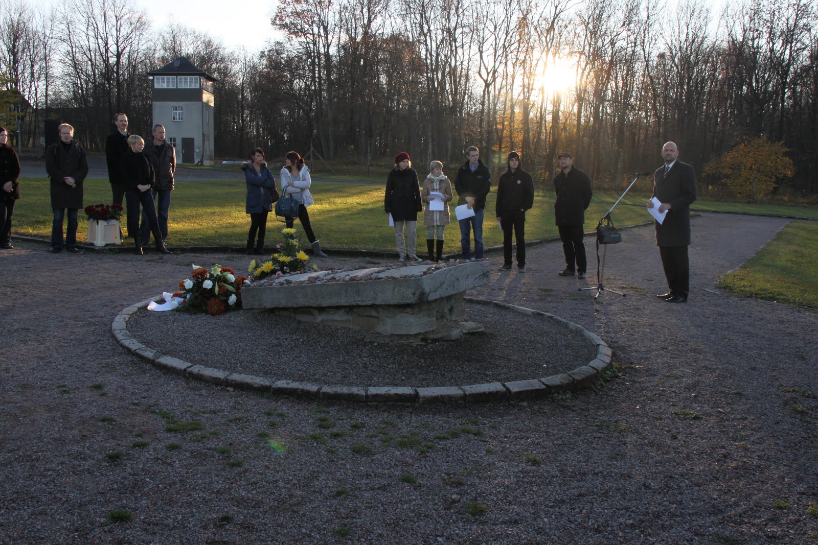 Thankfully it all went well, and the ceremony itself was quite simple and informal. As well as the quotes we read out, the head of the memorial site and the site's chief historian spoke about the events of November 1938 and the mayor of Weimar laid a wreath at the location where temporary barracks were erected to house the men brought to Buchenwald as a result of the pogrom. Ceremonies like this took place all over Germany on the same day and I saw wreaths and flowers in many different towns and train stations over the following weeks.